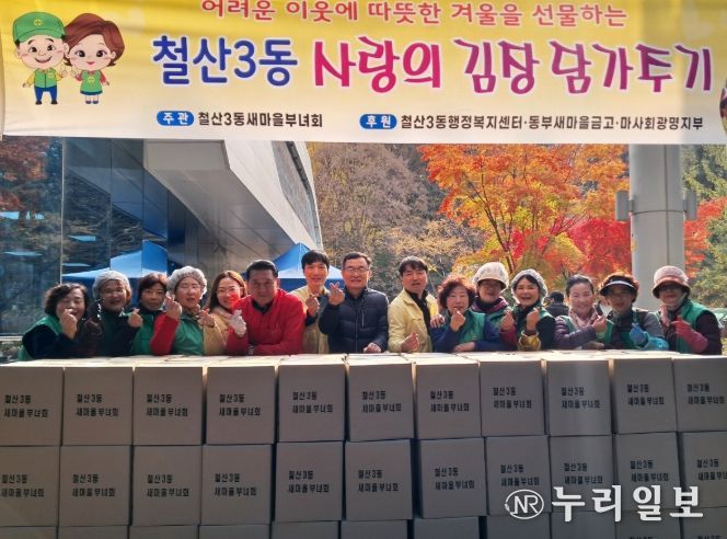 (누리일보) 광명시 철산3동 새마을부녀회는 지난 19일부터 20일까지 이틀간 철산3동 행정복지센터 앞마당에서 ‘사랑의 김장 나누기’ 행사를 열었다.