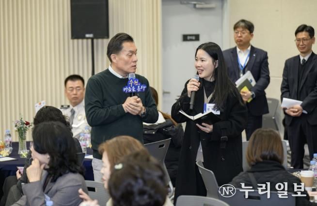 ‘2025 새빛만남- 수원, 마음을 듣다’에서 자주 볼 수 있는 풍경이다. 시민이 건의 사항을 이야기하면 담당 부서 책임자가 건의한 시민과 일정을 조율해 최대한 빨리 현장을 찾아 문제점을 확인하고, 개선 대책을 수립한다.