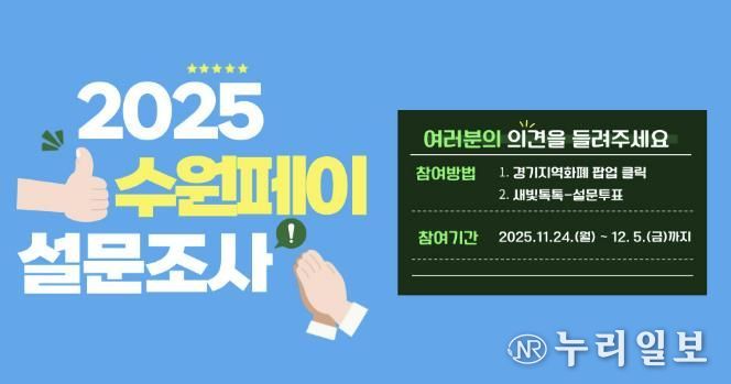 (누리일보) 수원특례시가 24일부터 12월 5일까지 ‘2025년 수원페이 사용자 설문조사’를 한다.