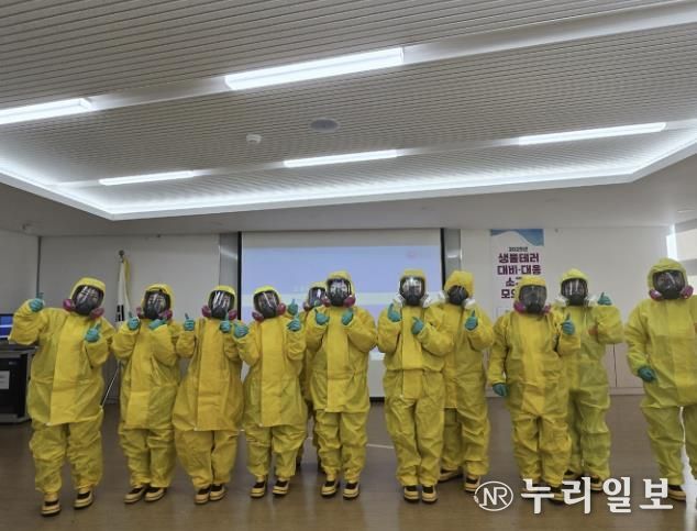 훈련에서는 ▲생물테러 대응체계 교육(동영상 시청) ▲다중탐지키트 사용법 실습 ▲개인보호구(Level A) 착·탈의 시연 ▲개인보호구(Level C) 착·탈의 실습 등 동영상 기반 이론교육과 시연·실습 중심의 프로그램 진행이 이뤄졌다.