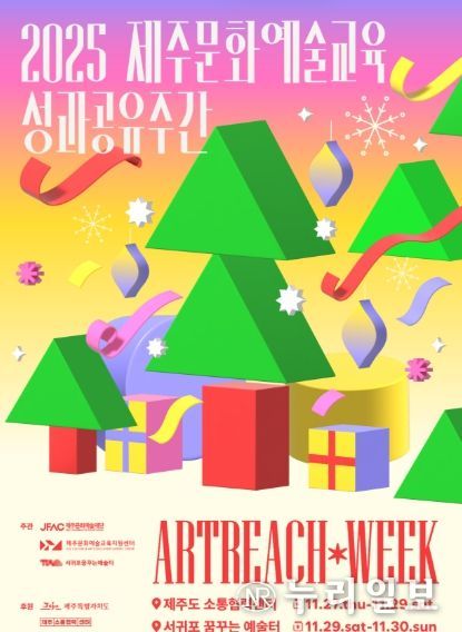 (누리일보) 제주문화예술재단은 오는 27일부터 30일까지 4일간 제주도 소통협력센터(제주시 관덕로 44)와 서귀포 꿈꾸는 예술터(서귀포시 천제연로 164)에서 2025년 제주문화예술교육 성과를 도민에게 공유하는 문화예술교육 축제인 '아트리치위크'를 운영한다.