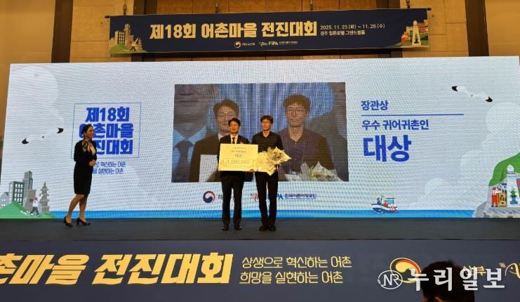 (누리일보) 전라남도해양수산과학원은 오늘 경주에서 열린 제18회 어촌마을 전진대회에서 2020년 전남귀어학교 제2기 수료생인 완도 김진호(46) 씨가 우수 귀어귀촌인 대상에 선정돼 해양수산부 장관 표창을 받았다고 밝혔다.