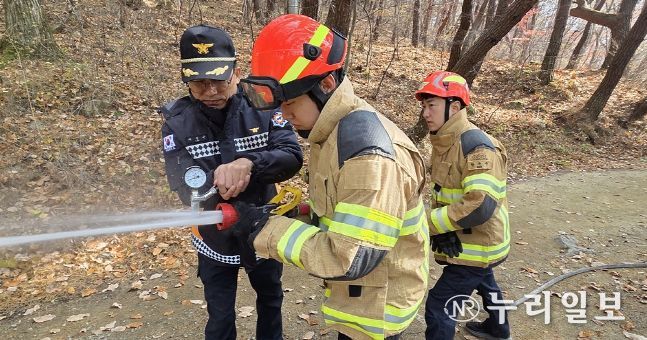 (누리일보) 대구소방안전본부는 최근 건조일수 증가와 지역 내 산불 발생 위험의 증가 등 변화된 기후 여건에 대응하기 위해, 산불 초기 대응 장비에 대한 현장 실증 실험을 11월 25일 팔공산 수태골 일원에서 실시했다.