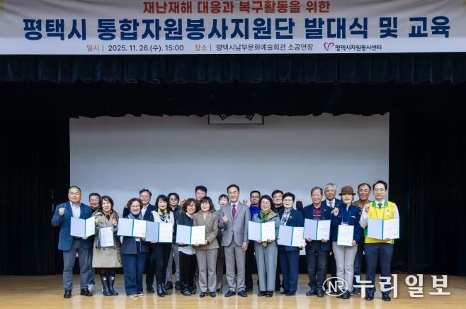 (누리일보) 평택시는 지난 26일 남부문예회관 소공연장에서 21개 자원봉사 단체가 참여한 가운데 ‘평택시 통합자원봉사지원단’발대식을 개최하고, 대규모 재난 발생 시 신속한 긴급 대응 체계를 본격 가동한다고 밝혔다.