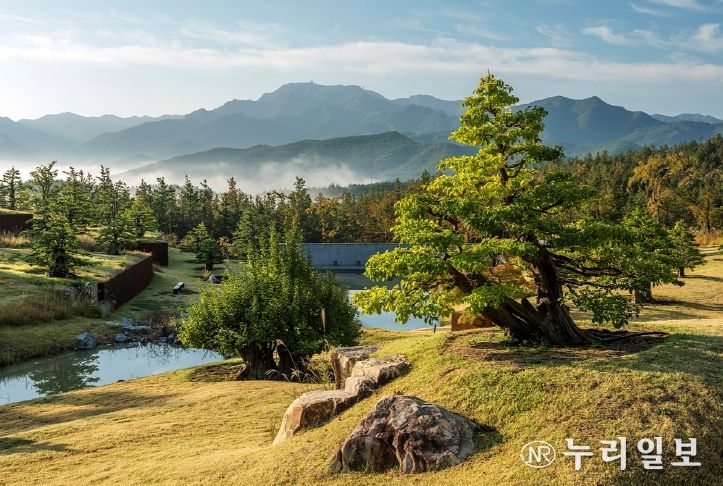 군위군 팔공산 자락에 위치한 사유원은 52만㎡ 부지에 모과나무를 비롯한 다양한 수목들과 세계적인 건축가와 조경가, 예술가의 작품이 조화롭게 어우러진 산림 속 정원이자 사색의 공간이다.