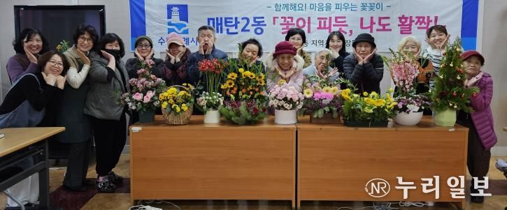 (누리일보) 지난 1일, 매탄2동 지역사회보장협의체는 특화사업 중 하나인 ‘꽃이 피듯, 나도 활짝!’꽃꽂이 교실을 마무리하며 어르신들의 작품으로 ‘우리들의 작은전시회’를 매탄2동 행정복지센터 민원실에 개최했으며, 4일까지 전시한다.
