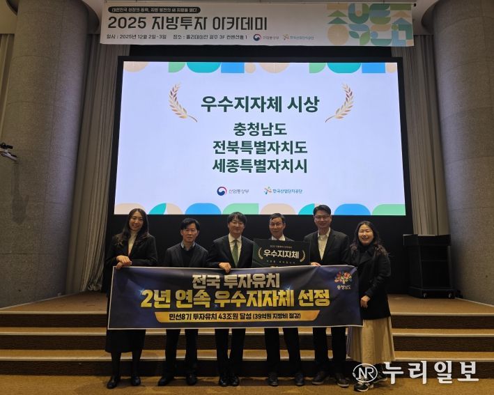 (누리일보) 충남도는 산업통상자원부 주관 ‘2025년 지방투자촉진사업 지자체 평가’에서 세종시, 전북과 함께 ‘우수’ 지자체로 선정됐다고 2일 밝혔다.