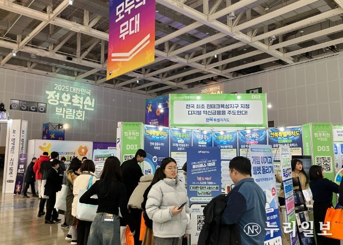 (누리일보) 전북특별자치도는 3일, 충청북도 청주 오스코에서 5일까지 열리는 ‘2025 정부혁신 박람회’에 참가해 “전국 최초, 핀테크육성지구 지정으로 디지털 혁신 금융을 주도한다”는 주제로 전북의 혁신 성과를 선보였다고 밝혔다.