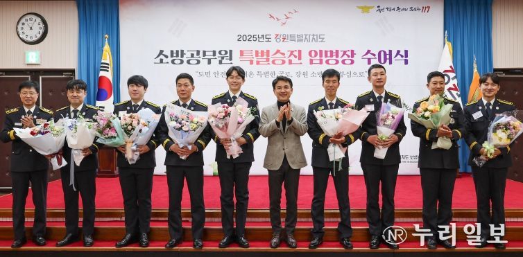 (누리일보) 강원특별자치도는 12월 3일 도청 신관 대회의실에서 도민의 생명과 안전을 지키는 데 헌신한 우수 소방공무원 8명에 대해 특별승진 임용장 수여식을 개최했다고 밝혔다.
