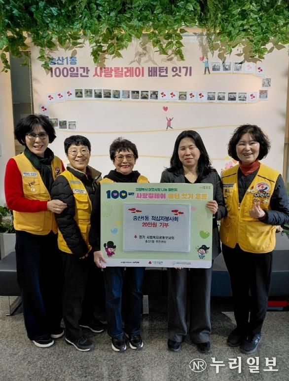 (누리일보) 의정부시 송산1동주민센터는 12월 2일 대한적십자사 송산1동적십자봉사회가 ‘100일간 사랑릴레이 배턴 잇기’에 동참해 사랑의 성금 20만 원을 기탁했다고 밝혔다.