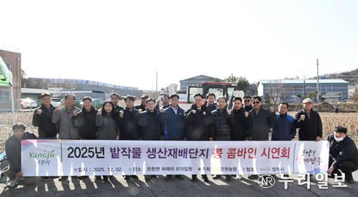 (누리일보) 양주시가 지난 2일 은현면 하패리에서 은현농협 조합원 20여 명과 함께 ‘2025년 밭작물 생산·재배단지 조성사업 콩 콤바인 시연회'를 열었다.
