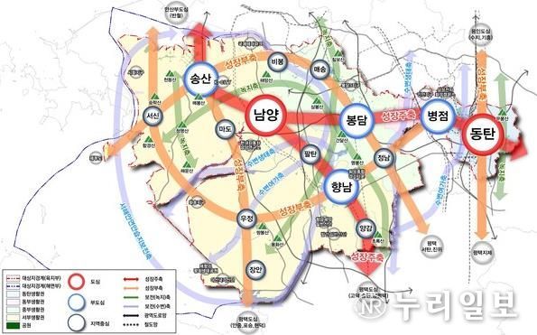 '2도심’은 남양과 동탄으로, 주요 도시 기능을 담당하는 시청이 위치한 행정 거점 ‘남양’과 경제ㆍ산업ㆍ교통 등 시의 전반적인 경제성장을 견인하는 ‘동탄’으로 설정됐다. 이를 통해 인접 시군간 광역적 연계와 동서간 균형발전을 도모한다는 계획이다.