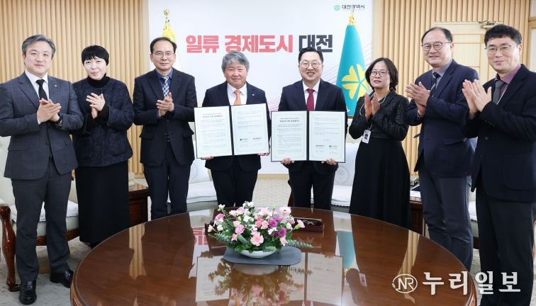 (누리일보) 대전시와 건양대학교는 9일 오전 시청 응접실에서 ‘신교통단(3칸 굴절차량) 시범사업 차고지 조성을 위한 부지사용 업무협약’을 체결했다.