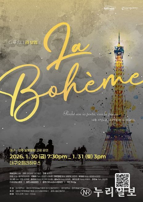 (누리일보) 대구문화예술진흥원 대구오페라하우스는 2026 첫 공연으로 선보이는 광주시립오페라단 제작의 푸치니 오페라 '라 보엠'을 30% 할인된 금액으로 만날 수 있는 조기예매(얼리버드)를 12월 10일부터 31일까지 진행한다.