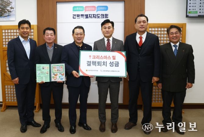(누리일보) 강원특별자치도의회는 연말을 맞아 도민 나눔문화 확산과 취약계층 지원을 위해 12월 10일(수) 10시 도의회 청사에서 대한결핵협회 결핵예방 크리스마스 씰 증정식과 대한적십자 특별회비 전달식을 각각 개최했다.