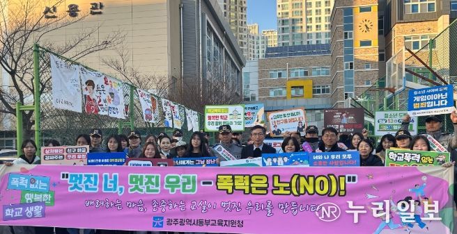 (누리일보) 광주광역시동부교육지원청이 지난 9일 오후 4시 30분부터 북구 신용중학교와 신용동 일대에서 지역사회 유관기관과 함께 ‘찾아가는 학교폭력 예방 캠페인’을 실시했다.