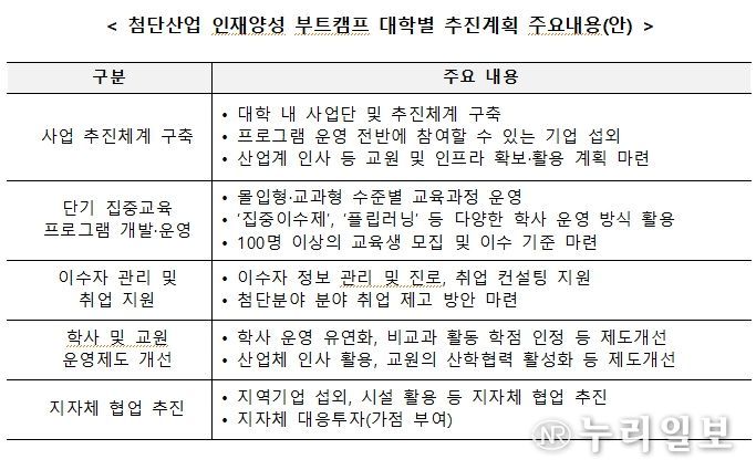 (누리일보) 교육부와 한국산업기술진흥원(원장 민병주)은 12월 11일에 ‘2026년 첨단산업 인재양성 부트캠프’ 운영계획을 발표하고, 공고를 통해 참여대학을 모집한다.