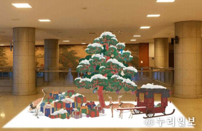 (누리일보) 국가유산청 국립고궁박물관은 연말을 맞아 박물관을 방문하는 관람객들을 위해 소장 유물 '십장생도'를 활용한 크리스마스 트리 장식을 선보인다.