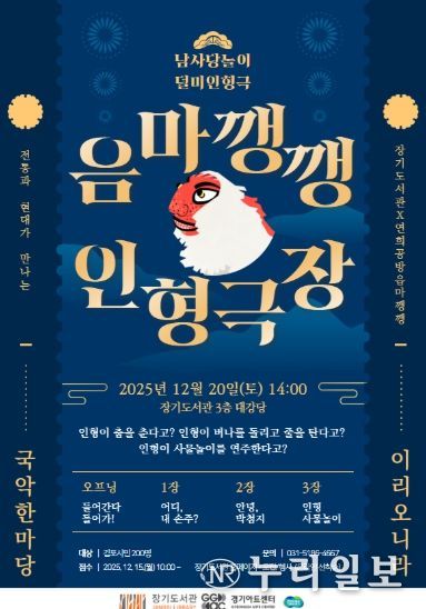 (누리일보) 김포시 장기도서관은 오는 12월 20일 오후 2시, 3층 대강당에서 ‘음마깽깽 인형극장’을 운영한다고 밝혔다.