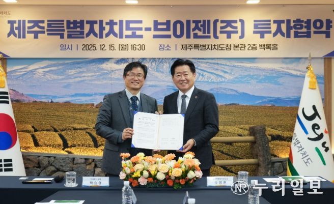 제주도는 15일 오후 4시 30분 도청 백록홀에서 브이젠㈜과 신설 투자 및 신규 채용 등을 주요 내용으로 하는 투자협약을 체결했다.