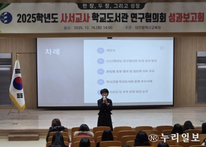 (누리일보) 대전시교육청은 12월 16일 대전 관내 사서교사 및 학교도서관·독서교육 담당 교사를 대상으로 ‘2025학년도 사서교사 학교도서관 연구협의회 성과보고회’를 개최했다고 밝혔다.