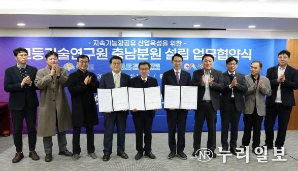 (누리일보) 충남도는 17일 충남도청 상황실에서 지속가능항공유(SAF) 산업육성을 위한 ‘고등기술연구원 충남분원 설립’ 업무협약을 체결했다고 밝혔다.