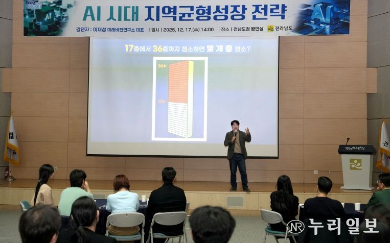 (누리일보) 전라남도는 17일 도청 왕인실에서 이재성 미래비전연구소 대표를 초청해 ‘AI 시대 지역균형성장 전략’을 주제로 강연을 개최했다.