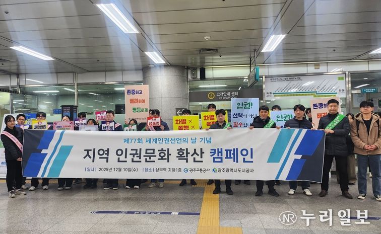 (누리일보) 광주도시공사(사장 김승남)는 지난 10일 서구 상무역에서 광주교통공사와 합동으로 인권문화 존중 캠페인을 펼쳤다고 밝혔다.
