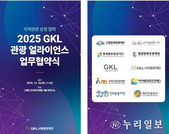 (누리일보) 여주세종문화관광재단은 지난 12월 16일 GKL 사회공헌재단이 주관한 ‘GKL 관광 얼라이언스 업무협약식’에 참석하여, 전국 8개 지역관광 전담기관과 함께 문화·관광 분야 공익사업 협력을 위한 업무협약을 체결했다고 밝혔다.