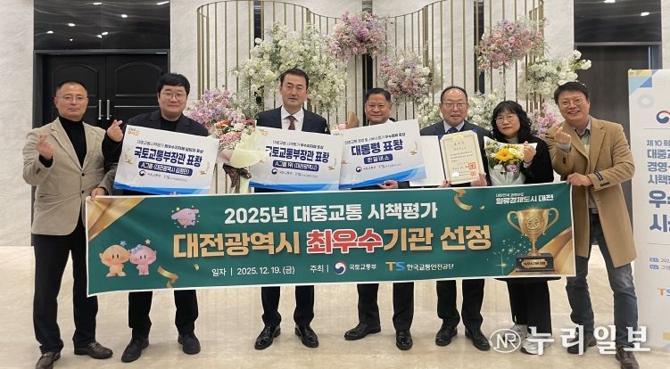 (누리일보) 대전시는 국토교통부 주관 2025년 대중교통 시책평가에서 최우수기관으로 선정돼 19일 장관 표창을 수상했다.