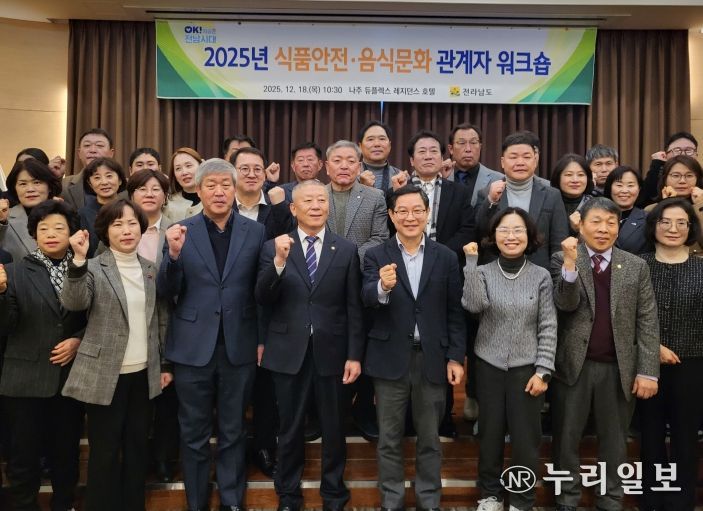 (누리일보) 전라남도는 18일 나주 듀플렉스 레지던스 호텔에서 2025년 식품안전·음식문화 관계자 워크숍을 열어 지역사회 건강을 지키고 관광객에게 맛있는 먹거리를 제공하는 품격 있는 음식문화 조성을 다짐했다고 밝혔다.