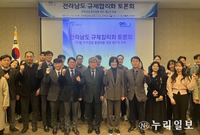 (누리일보) 전라남도는 우주산업 활성화를 위한 제도적 과제를 주제로 한 규제합리화 토론회를 지난 17일 순천에서 열고, 입법 지체 해소와 우주항공산업 발전에 필요한 법·제도를 논의했다.