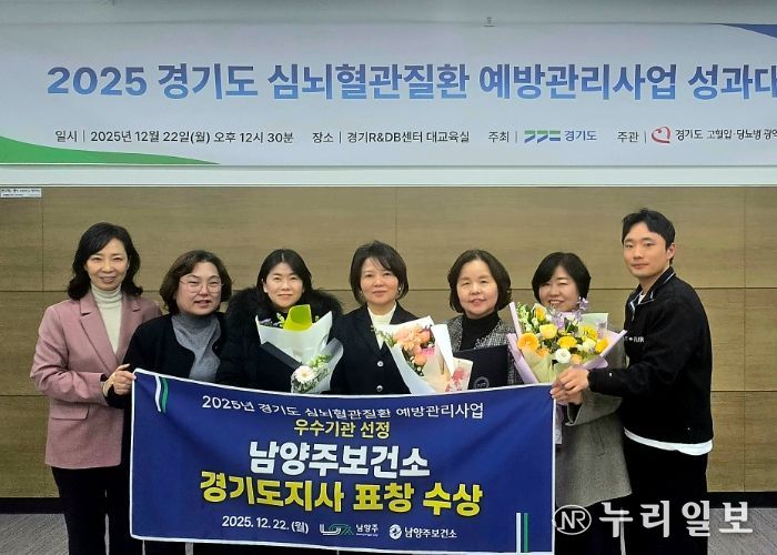 (누리일보) 남양주시는 12월 22일에 열린 ‘2025년 경기도 심뇌혈관질환 예방관리사업 평가’ 고혈압·당뇨병 예방을 위한 건강관리사업 부문에서 우수한 효과를 인정받아 경기도지사 기관 표창을 수상했다.