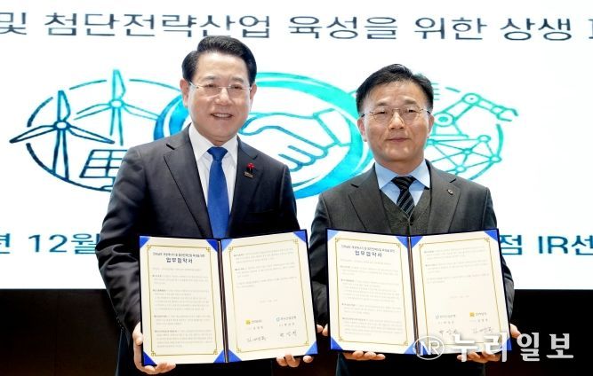 (누리일보) 전라남도는 22일 서울 여의도 한국산업은행 본점에서 김영록 전남도지사와 박상진 산업은행 회장이 참석한 가운데 ‘신재생에너지 및 첨단전략산업 육성’을 위한 업무협약을 체결했다고 밝혔다.