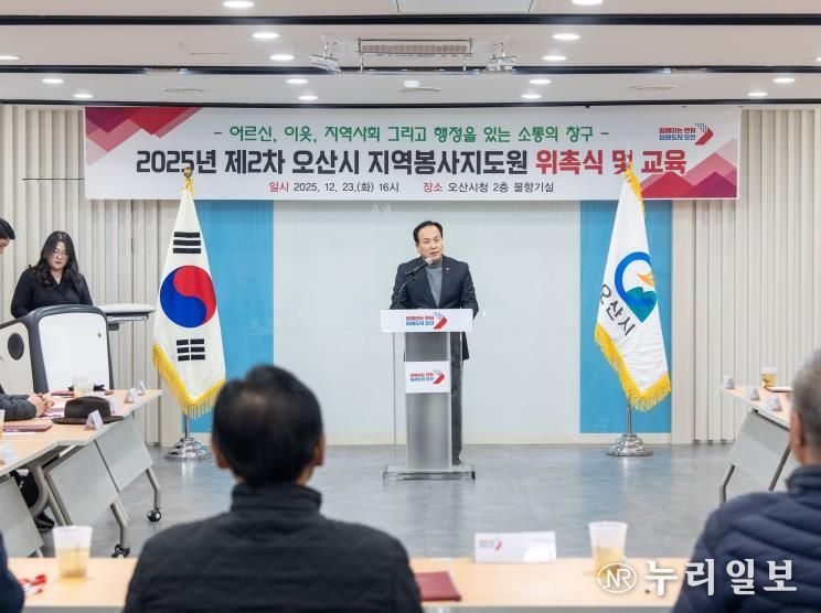 (누리일보) 오산시는 지난 23일 오산시청 물향기실에서 신규 경로당 회장을 대상으로 한 '2025년 지역봉사지도원 위촉식'을 개최했다고 밝혔다.
