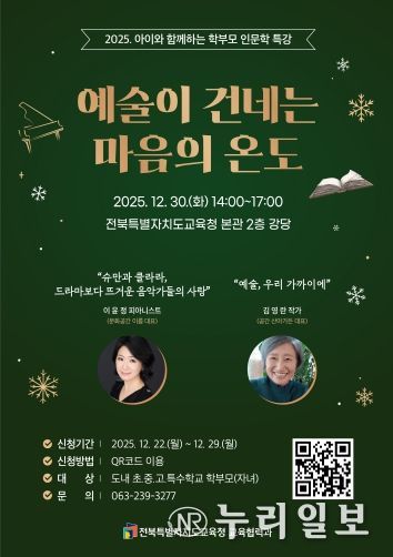 (누리일보) 전북특별자치도교육청은 30일 오후 2시 2층 강당에서 ‘아이와 함께하는 학부모 인문학 특강’을 개최한다.
