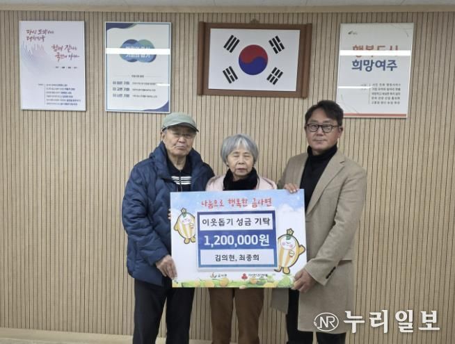 (누리일보) 금사면 생활개선회 최종희 회장이 배우자와 함께 지난 24일 여주시 금사면행정복지센터를 방문하여 이웃돕기 성금 120만원을 기탁했다.