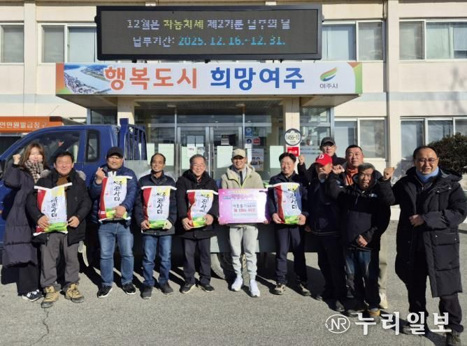 (누리일보) 대신면 후계농업경영인회는 지난 12월 26일 지역 내 어려운 이웃을 돕기 위해 따뜻한 마음을 담아 여주쌀 10kg, 44포를 대신면 행정복지센터에 기탁하며 연말을 맞아 따뜻한 나눔의 정을 전하며 지역 사회에 훈훈한 감동을 전했다.