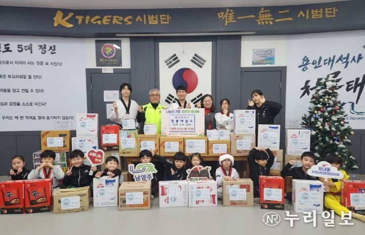 (누리일보) 남양주시는 지난 24일 크리스마스를 맞아 평내동에 위치한 용인대석사 청룡태권도(관장 박환균) 원생들이 ‘꼬마 산타’로 등장해 소중한 마음이 담긴 라면 840개를 기부했다고 밝혔다.