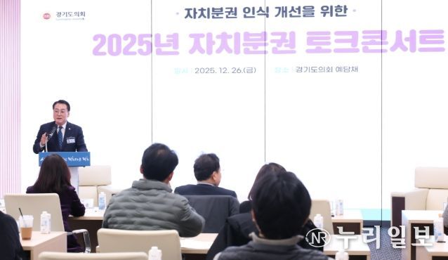 (누리일보) 경기도의회는 26일 도의회 예담채에서 의회사무처 직원들의 자치분권에 대한 이해를 높이고, 조직 내 공감대 형성과 지방의회의 발전방향을 공유하기 위한 ‘자치분권 토크콘서트’를 개최했다.
