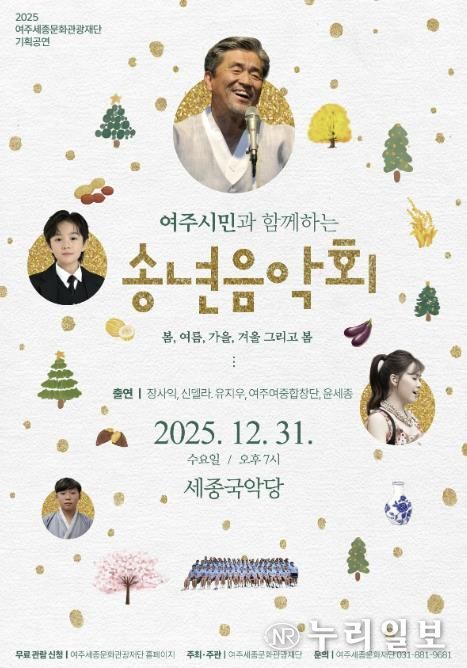 (누리일보) 여주세종문화관광재단이 오는 12월 31일, 세종국악당에서 ‘2025 여주시민과 함께하는 송년음악회’를 개최다.