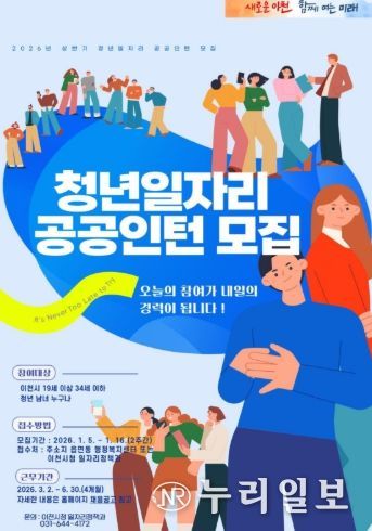 (누리일보) 이천시는 2026년 1월 5일부터 1월 16일까지 ‘청년일자리 공공인턴사업’의 상반기 참여자 47명을 모집한다.