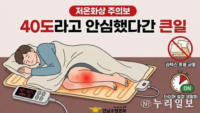 (누리일보) 본격적인 연말 한파로 가정 내 난방기구 사용이 급증한 가운데, 전남소방본부가 '저온화상'에 대한 각별한 주의를 당부하고 나섰다.