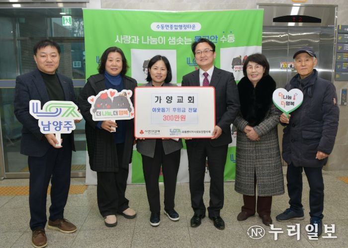 (누리일보) 남양주시는 29일 수동면 소재 가양교회에서 지역 내 어려운 이웃을 위한 후원금 300만 원을 경기사회복지공동모금회를 통해 수동면 지역사회보장협의체에 지정 기탁했다고 밝혔다.