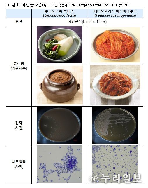 (누리일보) 농촌진흥청은 식품의약품안전처와 함께 김치, 장류 등 우리 전통발효식품에서 유래한 유산균 2종을 식품원료목록에 등재, 다양한 발효식품 개발을 지원한다고 밝혔다.