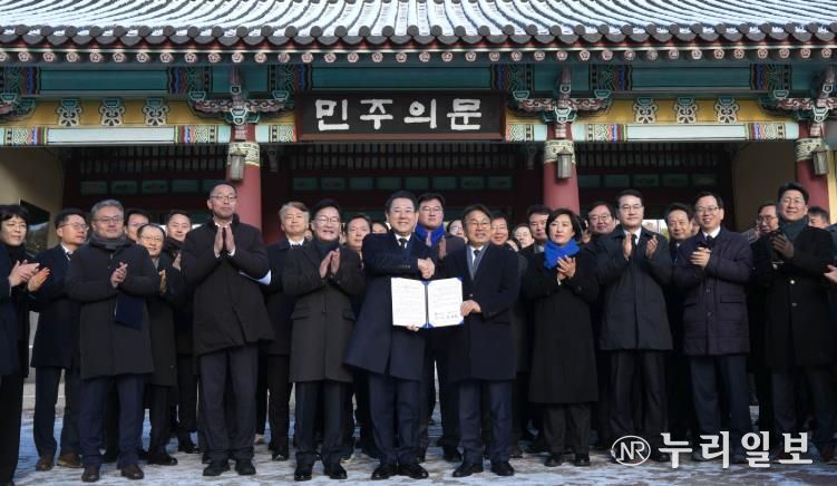 (누리일보) 전라남도와 광주시가 병오년 새해를 맞아 2일 국립5·18민주묘지에서 대한민국 민주화의 상징인 오월 영령들 앞에서 광주·전남 대부흥의 새 역사를 열어가기 위해 양 시·도 대통합을 즉각 추진하기로 선언했다.