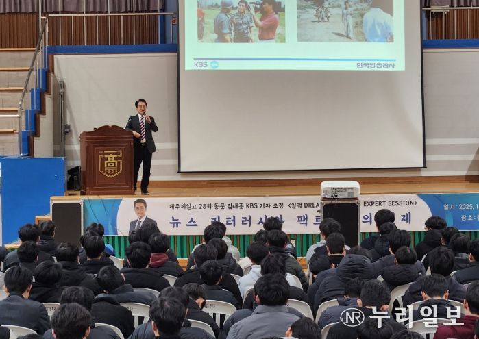 이번 특강은 김대홍 KBS 기자(28회 졸업생, 일요진단 라이브 진행)를 초청해 급변하는 미디어 환경 속에서 학생들이 뉴스를 비판적으로 이해하고 허위·왜곡 정보에 합리적으로 대응할 수 있는 역량을 기르기 위해 마련됐다.
