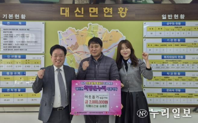 (누리일보) 지난 2일 티에이건설 김태진 대표가 관내 어려운 이웃을 위해 사용해 달라며 이웃돕기 성금 200만원을 대신면 행정복지센터에 기탁했다.