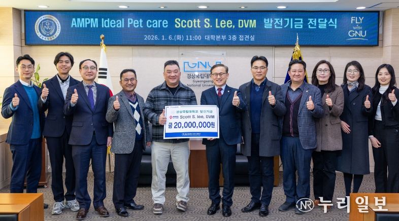 (누리일보) 경상국립대학교는 미국 ‘AMPM Ideal Pet Care(에이엠피엠 아이디얼 동물병원)’의 이시경(Scott S. Lee) 원장이 대학발전기금 2000만 원을 기부했다고 밝혔다.