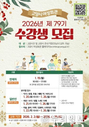 (누리일보) 고양특례시 여성회관은 오는 1월 19일부터 26일까지 2026년도 제79기 정규강좌 수강생을 모집한다고 밝혔다.